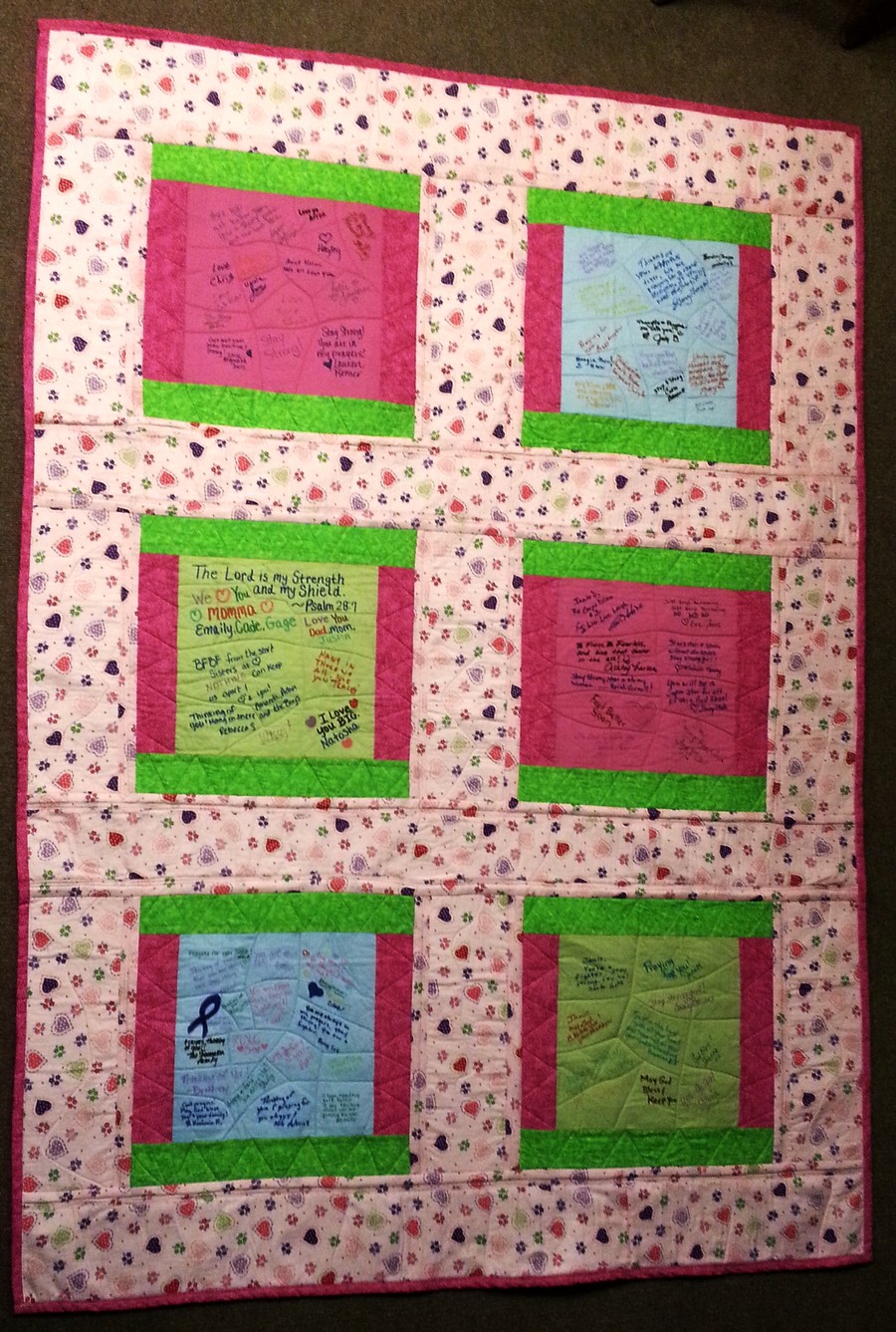 Message Quilts are a wonderful way to let someone know they are special and that everyone is thinking of them.